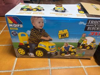 Camión correpasillos de la marca Molto, modelo 3x1. - Incluye 10 bloques Molto. - Diseño llamativo con colores vivos. - Sin abrir. Se venden nuevos por 35-40€.