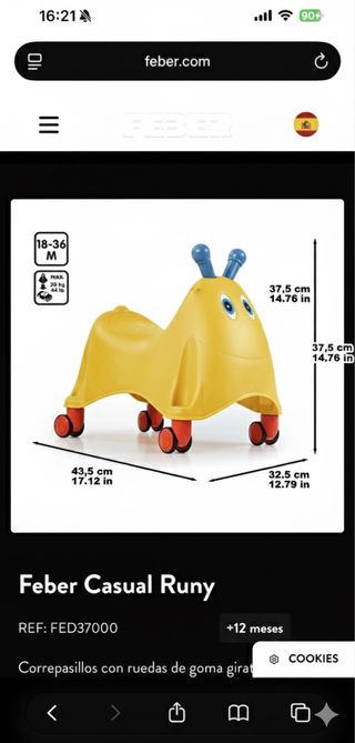 Correpasillos Feber Casual Runy en perfecto estado, como nuevo. - Edad recomendada: 18-36 meses. - Peso máximo soportado: 20 kg. - Dimensiones: 43,5 cm (largo) x 32,5 cm (ancho) x 37,5 cm (alto). - Ruedas de goma giratorias.