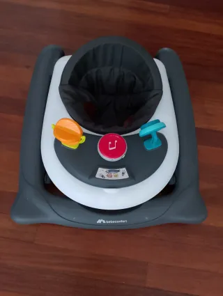 Correpasillos de la marca Bebeconfort en color gris y blanco. - Asiento acolchado. - Bandeja de actividades con juguetes. - Diseño ergonómico.
