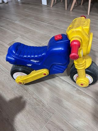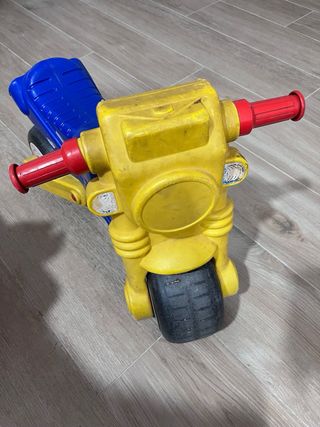 Moto correpasillos para bebés, ideal para los primeros paseos y el desarrollo de la motricidad. - Diseño llamativo en azul y amarillo. - Ruedas resistentes para diferentes superficies. - Asiento cómodo para el niño. Con desgaste en los colores