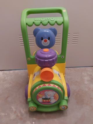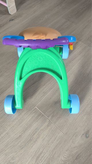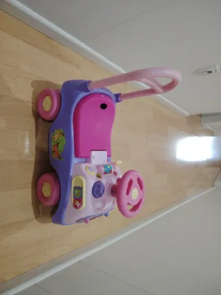 Correpasillos musical con un divertido diseño. - Volante interactivo. - Ruedas de plástico. - Asiento cómodo.