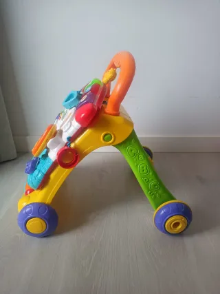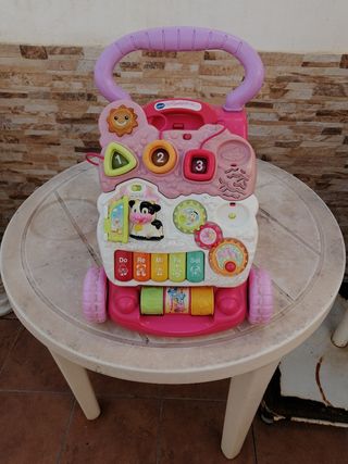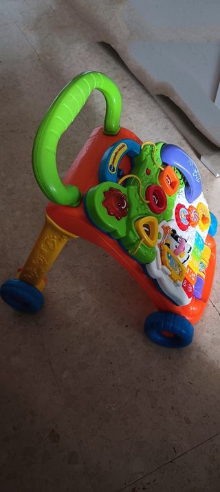Andador musical VTech para bebés, en buen estado. - Correpasillos con múltiples actividades. - Ideal para el desarrollo de la motricidad. - Diseño de casita con colores alegres. - Incluye luces y sonidos.