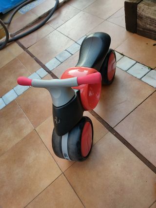 Moto correpasillos para bebés, en buen estado. Ideal para que los más pequeños empiecen a desarrollar su equilibrio y coordinación. - Diseño de moto deportiva. - Color azul y naranja. - Incluye un manillar cómodo y seguro. - Ruedas resistentes.
