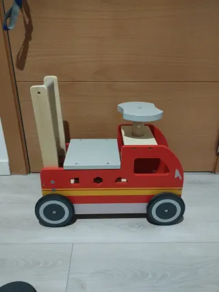Correpasillos de madera con diseño de camión de bomberos. Ideal para los más pequeños. - Fabricado en madera. - Colores rojo y amarillo. - Ruedas negras con detalles grises.