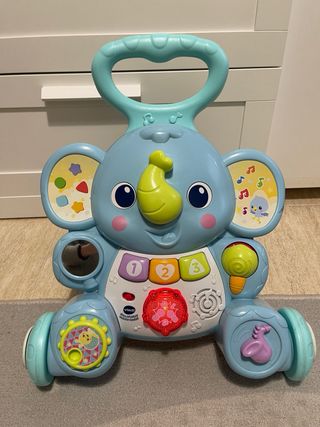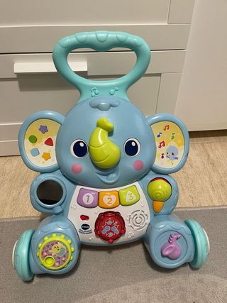 Andador y correpasillos musical con diseño de elefante de la marca VTech. Ideal para que los más pequeños aprendan a caminar. - Divertidos botones y actividades. - Sonidos y melodías. - Ruedas con dos velocidades para facilitar el movimiento. Su precio original es de 47€