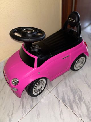 Correpasillos con diseño inspirado en el Fiat 500. - Color rosa vibrante. - Volante negro. - Detalles cromados en la parrilla y faros. -Maletero -Claxon -Antivuelco