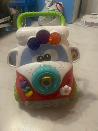 Correpasillos de diseño divertido con forma de furgoneta. - Ruedas de colores. - Detalles de engranajes y botones. - Asa superior para facilitar el agarre.