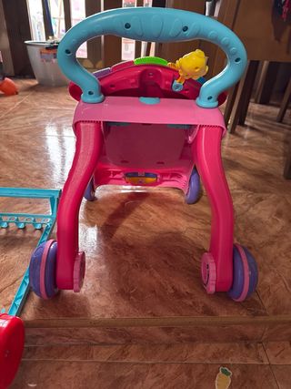 Correpasillos de la marca Juguettos, ideal para los más pequeños. - Diseño colorido con volante. - Empuñadura para empujar. Hace música y ruidos Está muy usado pero aún está bien