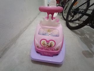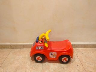 Correpasillo Disney bebé,el frontal los muñequitos suben y bajan con música el pitó funciona, al tocar la campana suena y se enciende las luces de ambos lados.La llave de arranque no hace sonido.Se ha utilizado, lleva algún rozón