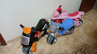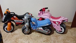 Dos motos correpasillos para niñas, en buen estado. Ideales para que los más pequeños se diviertan. - De plástico resistente. - Diseño de motos coloridas. - Perfecto estado de conservación. 15 und