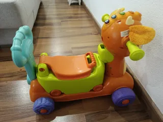 Correpasillos con forma de caballo convertible en balancín. Estable por sus grandes ruedas. Incluye sonido de trote y relincho. En perfecto estado casi nuevo.