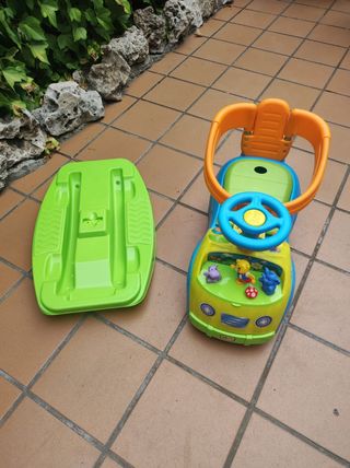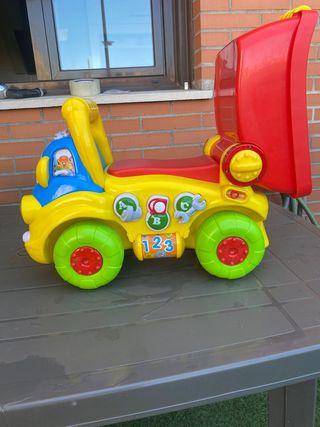 Correpasillos tipo camión/tractor para peques (1–3 años aprox.). De los que se convierten en “su primer coche”: se suben solos, empujan, giran y se sienten mayores. Tiene cofre bajo el asiento para guardar cositas (su juguete favorito: meter/sacar “tesoros”). Muy buen estado y listo para otra familia. Entrega en mano en Fuenlabrada. Precio: 20€. Tengo otros 2 juguetes; las 3 cosas por 40€.