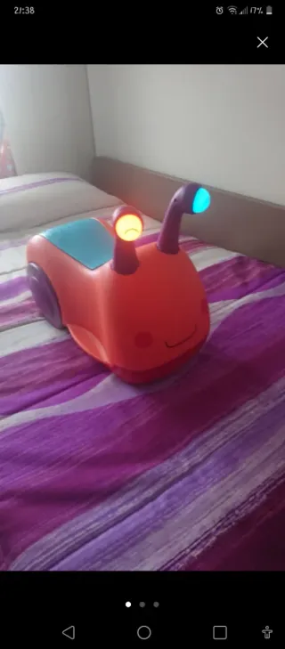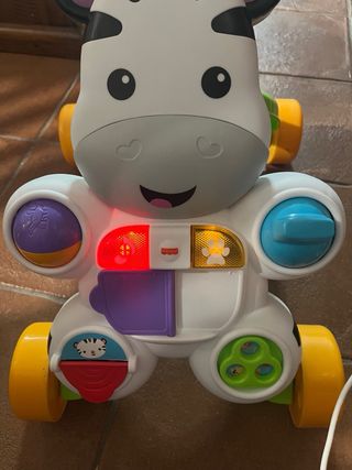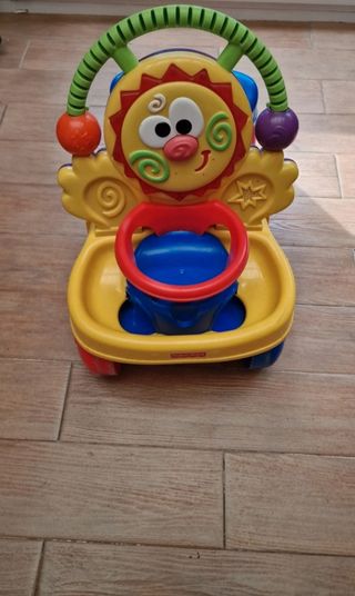 CORREPASILLOS EVOLUTIVO 2 EN 1: La base basculante ofrece a los más pequeños la posibilidad de balancearse de adelante a atrás hasta que cojan la destreza suficiente para utilizarlo como correpasillos de forma libre gracias a sus prácticas ruedas. CENTRO ELECTRÓNICO: Al presionar los botones del sombrero se podrán escuchar sonidos, música, luces.. DESARROLLA LAS HABILIDADES MOTORAS: Con este juguete los niños podrán desarrollar sus capacidades motoras y la destreza a la hora de caminar y correr sobre 4 ruedas. Practicamente como nuevo, muy poco uso, funciona correctamente.