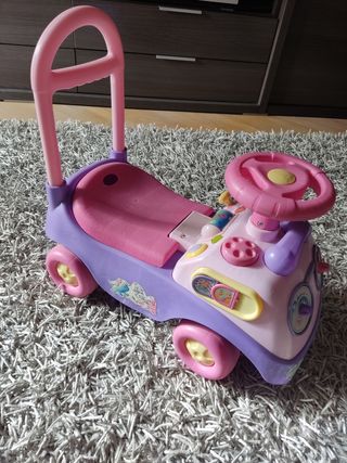 correpasillos de color rosa marca juguetos. funciona con música y sonidos. para edad de 12 meses en adelante. Tiene los precintos.