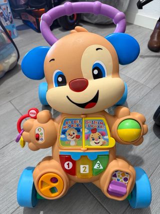 Correpasillos con forma de perro de la marca Fisher-Price. Ideal para que los más pequeños aprendan a caminar. - Incluye actividades interactivas. - Diseñado para fomentar el aprendizaje. - Ruedas para facilitar el movimiento.