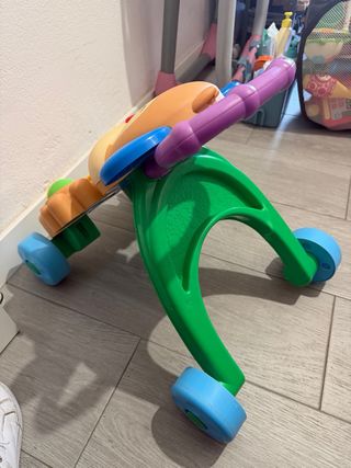 Correpasillos musical de Fisher Price con diseño de piano. - Barras de colores con números y formas. - Mango rojo para empujar.