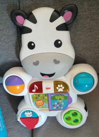 Preciosa cebra musical para primeros pasos de Fisher-Price. Está en muy buen estado. Viene desmontado en su caja original. - Ideal para que los más pequeños aprendan y se diviertan. - Incluye luces y música. - 17 actividades manuales. - Enseña el abecedario, los números y los colores. Sólo venta en persona