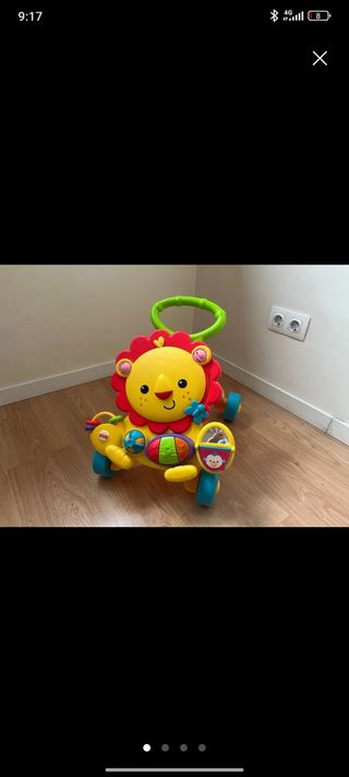 Divertido andador correpasillos con diseño de león para los más pequeños. - Ruedas de colores. - Mango de agarre verde. - Juguetes interactivos incorporados.