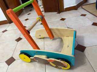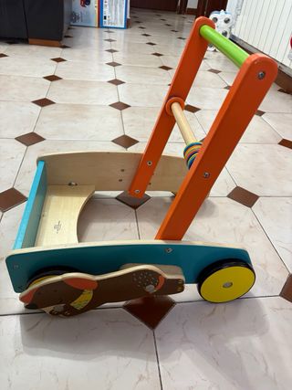 Andador correpasillos de madera para bebés, en muy buenas condiciones. Es un juguete muy completo y entretenido para los más pequeños. - Ideal para que el bebé aprenda a caminar de forma segura y divertida. - Incluye actividades como engranajes, laberinto de cuentas y bloques de formas geométricas. - Diseño atractivo con ilustraciones de animales. - Fabricado en madera resistente y de alta calidad.