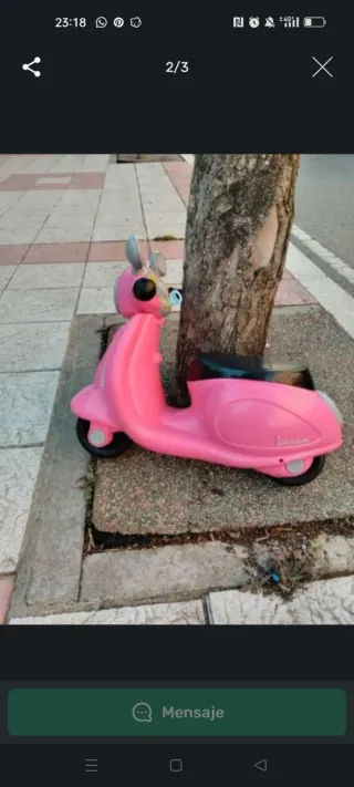 Moto correpasillos para niñas, en color rosa. Está en buen estado, aunque tiene algunas marcas de uso. No envío. Entrega en mano en León, Benavente o La Bañeza.