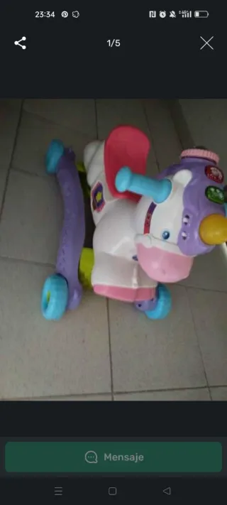 Caballito correpasillos Desde los 18 meses También se puede hacer balancín Con luces y sonido Con sensores y movimiento de los ojos En buen estado