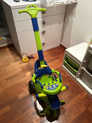 Correpasillos y triciclo para bebés de la marca Juguettos. Un juguete divertido y seguro para los más pequeños. - Diseño en color verde y azul. - Incorpora elementos musicales y de juego. - Barra de empuje y arnés de seguridad.