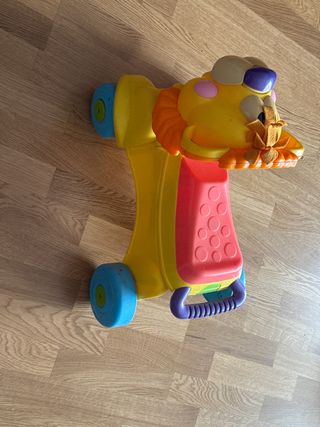 Divertido correpasillos con forma de león para los más pequeños. Ideal para aprender a caminar. - Diseño colorido y atractivo. - Ruedas resistentes. - Asa para empujar. - Asiento para sentarse y arrastar