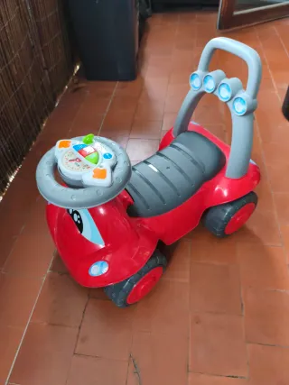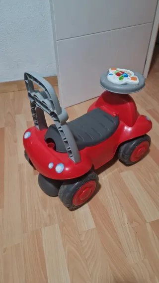 Divertido coche correpasillos de color rojo, ideal para los más pequeños. - Volante con panel de actividades y sonidos. - "Maletero" bajo el asiento Poco uso.