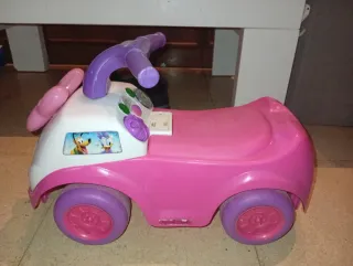 Correpasillos infantil de color rosa, con detalles de Minnie Mouse y Pluto.precio no negociable no ago envios - Diseño divertido y colorido. - Ruedas moradas. - Volante con botones.