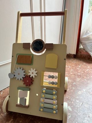 Andador de madera para bebés, ideal para que los más pequeños den sus primeros pasos de forma segura y divertida. Está en muy buen estado. - Correpasillos con múltiples actividades integradas. - Diseño atractivo y colorido. - Fabricado en madera resistente.