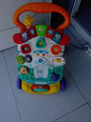 Correpasillos Vtech con múltiples actividades para el aprendizaje y la diversión. - Incluye ruedas para facilitar el movimiento. - Diseñado con colores vivos y alegres. - Incorpora elementos interactivos como botones y engranajes.