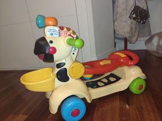 Cebra scooter de Vtech (3 en 1), se transforma de manera sencilla: - Correpasillos - Andador - Patinete Con luces, música y voz.