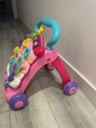 Andador para bebés VTech en perfecto estado. Ideal para que los más pequeños den sus primeros pasos de forma segura y divertida. - Correpasillos con actividades interactivas. - Incluye luces y sonidos. - Diseño colorido y atractivo para niños.
