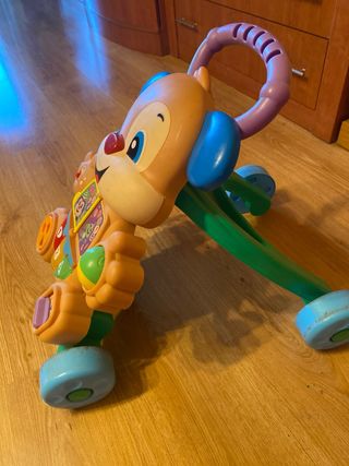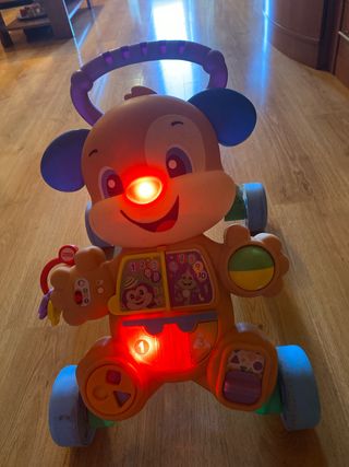 Andador para bebés Fisher-Price en buen estado. Es un andador musical con luces y sonidos. - Diseño de cachorro adorable. - Ideal para ayudar al bebé a caminar. - Incluye luces y sonidos interactivos.