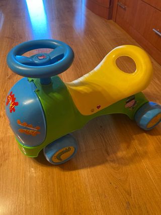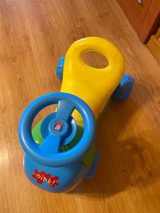 Divertido coche correpasillos con temática de Peppa Pig. Ideal para los más pequeños. - Volante azul con detalles. - Diseño colorido con oink!. - Asa amarilla para empujar.