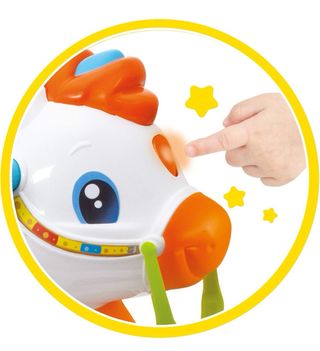 Apenas se ha usado! Caballito balancin, correpasillos y centro de actividades interactivo. Tiene sensor que reconoce el movimiento e involucra al niño con sonidos, palabras y canciones.