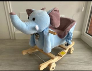 Balancin en forma se elefante de HOMCOM. los niños podran sentarse comodamente gracias a su asiento acolchado, columpiarse, agarrandose al manillar. Ademas cuenta con 4 ruedas que con un ligero movimiento se convierte en correpasillos. Emite melodias. Medidas y caracteristicas en las fotos.