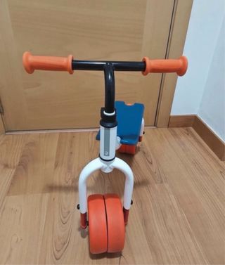 Correpasillos evolutivo de la marca Btwin, ideal para los más pequeños. - Diseño en color azul y naranja. - Tres ruedas para mayor estabilidad. - Manillar con puños naranjas.
