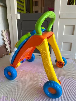 Correpasillos Vtech con múltiples actividades para el aprendizaje y diversión de los más pequeños. Diseñado para ayudarles a dar sus primeros pasos. - Mango para empujar. - Panel de actividades interactivo con luces, sonidos y canciones. - Ruedas para desplazarse con diferentes posciones para que no se mueva muy rápido. - Volumen de voz y sonido regulable. IMPORTANTE: Le falta un telefono de juguete que se quitaba y se ponía. No afecta a la jugabilidad. De ahí su precio.