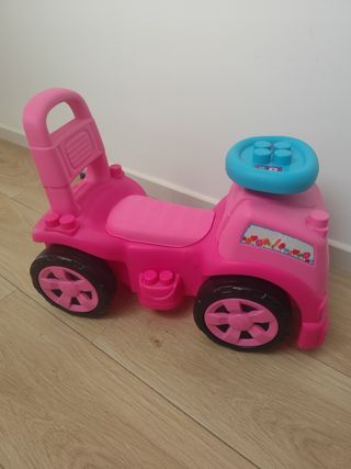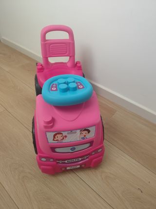Correpasillos de juguete con un diseño llamativo en color rosa y negro. Cuenta con un asiento y un asa para que los más pequeños puedan jugar y moverse. - Ruedas grandes y resistentes. - Detalle de rueda decorativa central con logo. - Asa superior para empujar o sujetar.