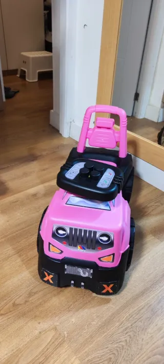 Correpasillos con diseño de Jeep en color rosa con almacenamiento