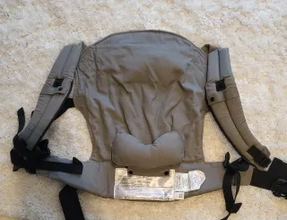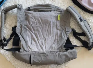 Mochila ergonómica para llevar al bebé de forma cómoda y segura. Ideal para paseos y viajes. - Color gris. - Etiqueta de la marca Boba visible.