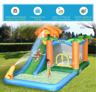 Outsunny Castillo Hinchable con Tobogán Cama de Salto y Piscinas para Niños +3 Años con Inflador y Bolsa de Transporte para Interior Exterior 550x285x260 cm Multicolor 342-060v90 ce exposición puede tener alguna mancha de estar expuesto está al 60%