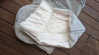 Saco para cochecito de la marca Walking Mum, ideal para mantener al bebé abrigado. Presenta un diseño acolchado y un suave forro interior. - Tejido exterior con un patrón de líneas finas. - Forro interior de pelo muy suave.