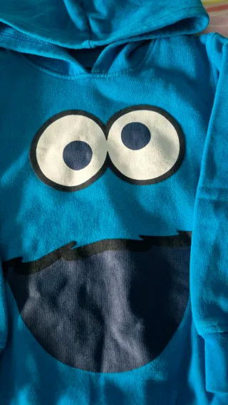 Sudadera infantil de manga larga con capucha. - Diseño inspirado en Cookie Monster. - Color azul vibrante. - Puños y bajo elásticos. - Talla 10.