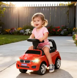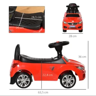 HOMCOM Coche Correpasillos para Niños de 18-36 Meses con Faros Música Bocina Volante Espacio de Almacenaje y Asa Rojo 370-201rd