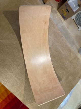 Tabla de equilibrio de madera, ideal para trabajar la psicomotricidad en niños y niñas. Pikler, Montessori, Waldorf. - Material: Madera. - Forma: Curva. - Medidas: 94 x 33 x 25 cm - Estado: Se le ha dado uso, pero está en perfectas condiciones para seguir jugando con ella. Es de buena calidad. Precio original 80 €.