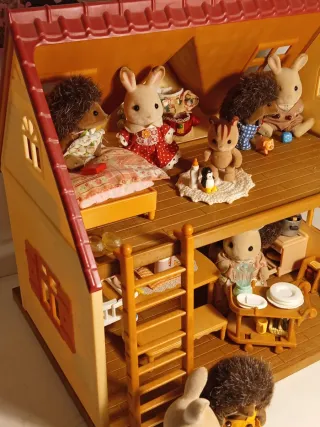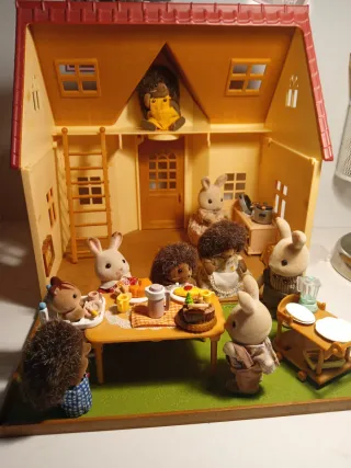 Casa de muñecas Sylvanian Families con varios accesorios y figuras. - Mobiliario y complementos para el hogar. - Ideal para coleccionistas y juego infantil. SON UNA CUCADA!!! Están bien cuidados, en buen estado.