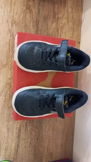 Zapatillas deportivas Puma para niño en talla 23. Son cómodas y prácticas para el día a día. Como nuevas - Cierre de velcro. - Color azul marino. - Suela blanca.