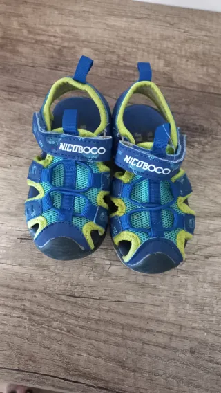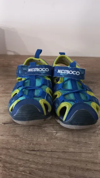 Sandalias para niño de la marca NICOBОСО en talla 23. Perfectas para el verano. - Color azul y verde lima. - Cierre de velcro. - Diseño abierto y transpirable.